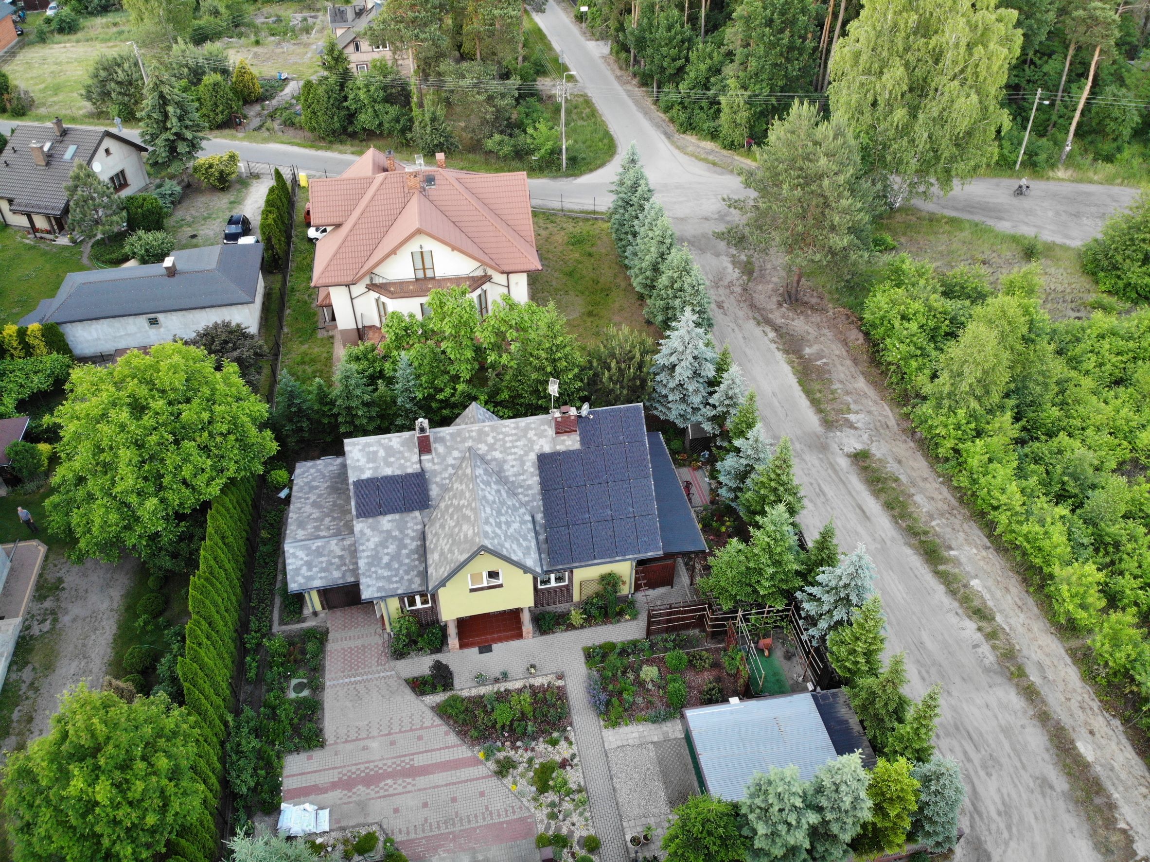 Instalacja fotowoltaiczna 6,72 kWp zainstalowana w Międzyborowie w gminie Jaktorów panele Full Black dobrze pasują do centkowanej dachówki na budynku inwestora